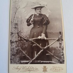 antik fotografi kvinna med hatt och parasoll