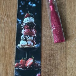 Bokmärke med glassdessert motiv och tofs