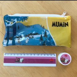 Mumin pennfack, linjal, pennvässare