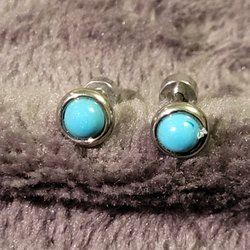 Nya örhängen I rostfritt stål turkos sten