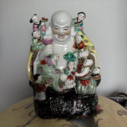 BUDAI/SKRATTANDE BUDDHA MED NIO BARN