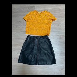 Gul Spetstopp och Svart skinnkjol xs