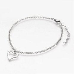 Handgjort Silverpläterad Vristlänk med metall pärlor och hängande hjärta