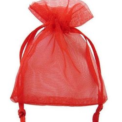 25 st Handsydda Röda organza påsar c:a12 x 9 cm.