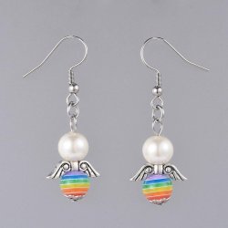 Handgjorda Ängelformade örhängen med vita och rainbow pärlor
