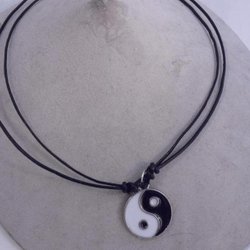 Ställbar svart läder halsband med Yn-Yang hänge i tibet silver