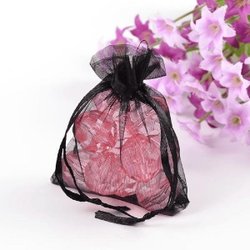 10 st.Handsydda Svarta organza påsar c.a 7x9 cm.