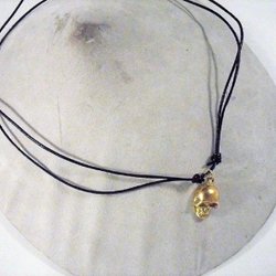 Handgjord Ställbar naturfärgad läder halsband med döskalle hänge