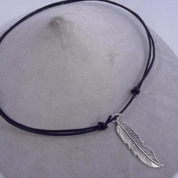 Handgjord Ställbar svart äder halsband med stor fjäder hänge