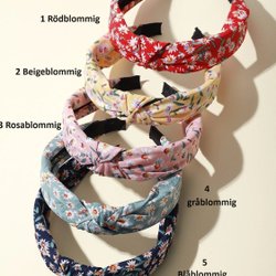 Handgjord Tygkläd diadem med knyt (5 blå blommig)