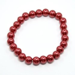 *Handgjord Elastisk Armband med 6 mm. Röda Glaspärlor