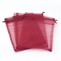 50 Handsydda stora Vinröda 0rganza påsar c:a 10x12 cm