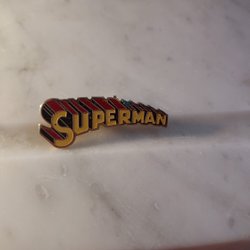 Brosch SUPERMAN i Guldig Metall Gul/Röd Ovansida Längd ca 4,5 cm