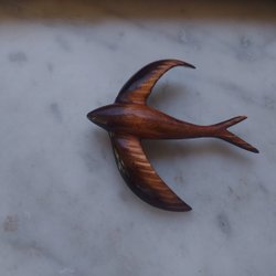 Brosch 50-tal Hantverk Svala i Brunt lackerat Trä Längd 6 cm Vingbredd 5,5 cm