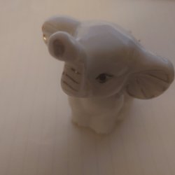 Elefant i Vitt Porslin med "Guld" på Öron o Snabel Rosenbukett Höjd ca 8 cm