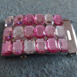 Bältesspänne Silvrig Metall "Diamanter" Rosa o Vitt Längd 7,5 cm Bredd 4,5 cm