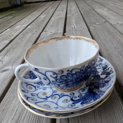 Äldre blå guld porslin kopp och 2 fat från Lomonosov