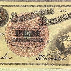 Sveriges Riksbank Sedel 5 kronor 1946 ovikt