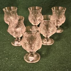 6 st Orrefors likörsglas "Påfågel".