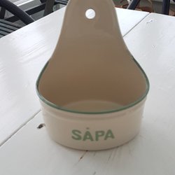 Kockums emaljerad vägghängd behållare för såpa