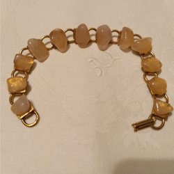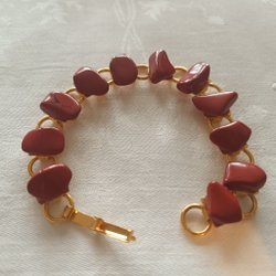 Armband m röda Jaspis stenar på länk i gulmetall, ca 19,5 cm