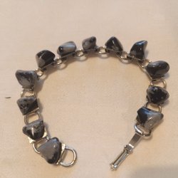 Armband med stenar av Obsidian Snöflinge~ på silverfärgad länk ca19,5 cm