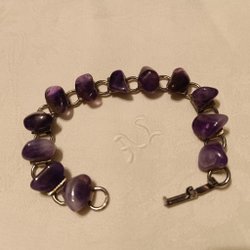 Armband m Ametister på silverfärgad 19,5 cm länk,