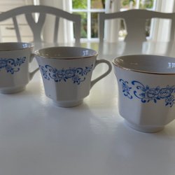 Koppar med blå blommor