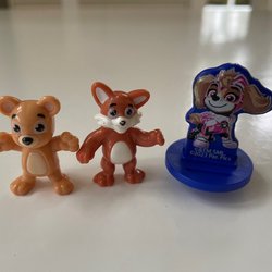 Små kinderägg-figurer. Räv, nalle, Sky