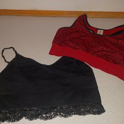 Två Toppar - Svart Spetstopp och Röd Leopardtopp