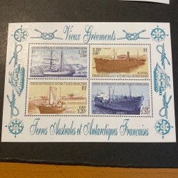 Franska Antarktis postfriskt block båtar