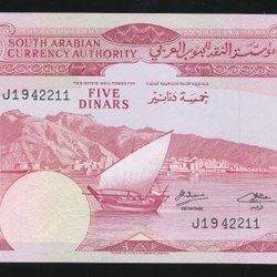 Yemen D.Rep. 5 Dinar UNC kv 0 se bild
