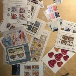 Kartong med frimärken/brev mm UTROP 15 kr