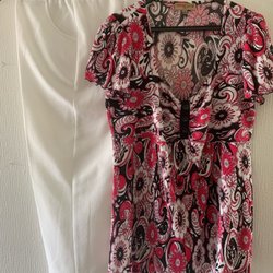 Blommig Blus med Vita Byxor - Set