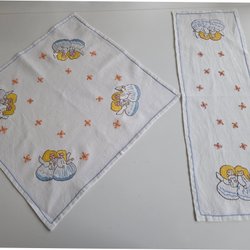 Handbroderd duk och löpare 46×49 cm och 21,5×64 cm