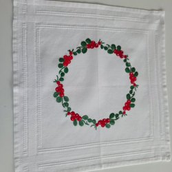 Handbroderad duk med lingonkrans 37×36 cm