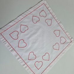 Duk med vitt invävt mönster på röd väv 43,5×45 cm