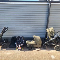 Begagnade barnvagnar från bland annat BRIO, Crescent och Bugaboo